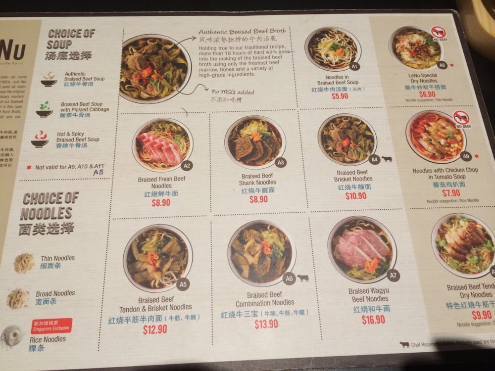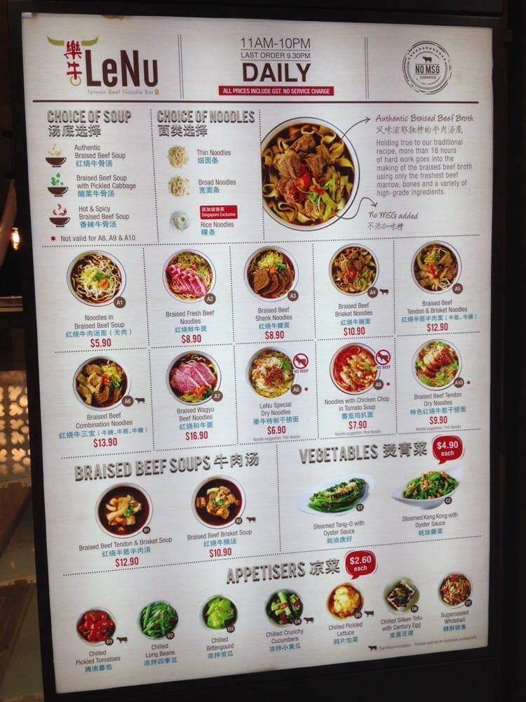 LeNu Taiwan Beef Noodle Menu (Update 2025)